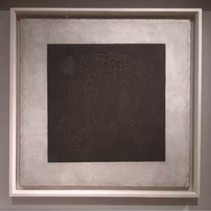 这种可能性也许正是有关绘画的任何可能性,是只有在绘画起源时才具有的可能性。西方绘画的起源有一种极为出名的说法——影子说,指希腊时期有位女子的爱人将出征战斗,且这次出征很可能去而无返,于是为了留下爱人的样貌,她用烛光照亮了男子的脸庞,在墙壁上勾勒出其投影,绘画因此产生。故事中在墙壁上投射出的阴影成为了最初的绘画,虽然它仅仅是一团不规则的黑色斑块,但若将其规整后它又何尝不是《黑方块》所描绘的内容?在此意义上《黑方块》能够被用作对绘画起源进行回应,作为一团黑色斑块,它可以是任何事物的投影,任何事物都潜藏在这团黑影之下。当这团黑影呈现为矩形时,它似乎呈现的正是其所处的画布的形状,即投影和幕布的双重性质在《黑方块》中体现了出来。
