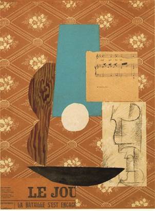 起初,无论是早期立体主义的构造物作品,还是拼贴和纸拼贴采用的低档便宜材料以及它们本身的廉价性,都引起了很多评论家的兴趣,而阿波利奈尔是第一个尝试对它们进行解读的人。其中,他曾在1913年3月号的杂志《蒙茹瓦!》(Montjoie!)中表态:在将“一首廉价的歌、一张真的邮票、一张报纸裁片和一面印了藤编纹路的油布”放到画里,代表的是画家创作自由的扩展,还有“画家无法对那些物体的真实性画蛇添足”[2]。