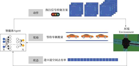 交通信号的主要功能是分配道路交叉口的车辆通行权,科学设计的信号控制方案能够显著提升交叉口的通行效率[7]。近年来,随着强化学习等人工智能技术的出现与持续发展,交通信号灯控制算法得到了持续改进和优化[8-10]。