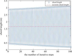 is set to 0.2425,the discrepancy between the iterative chord length and the exact value gradually increases,ultimately diverging.Therefore,once the iterative parameter exceeds the threshold,the iterative chord length no longer converges to the exact value