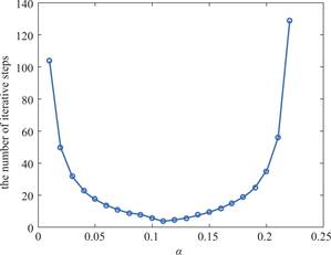 increases,the number of iterative steps decreases to an extreme value and then gradually increases until it reaches a point of divergence.The optimal iterative parameter depicted in Fig.5 is 0.11,corresponding to a total of four iterative steps.