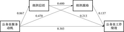 4.1 公务员公共服务动机、组织信任、组织激励、工作绩效间的影响