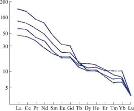 图3-1 细碧岩稀土元素球粒陨石标准化配分模式[7]