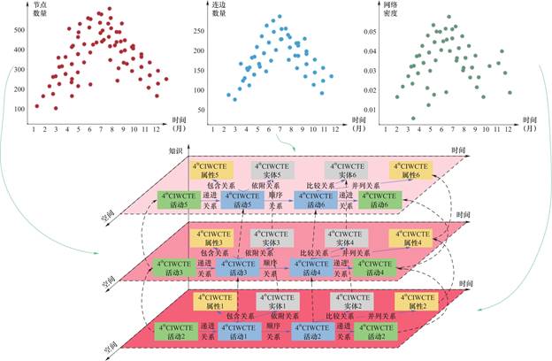 图7 第4届CIWCTE活动时空知识图谱节点、连边、网络密度变化过程(作者自绘)