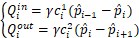 式中:Qin和Qout为裂缝单元i内流体的流入和流出流量,m2/s;γ=