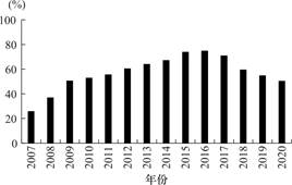 产业园区作为推动经济快速发展的载体和发动机,其作用逐步发挥出来。在2000年之前的10年间,西宁市GDP年均增长率为7.56%,最高年份1998年为10.1%,其他年份都没有超过两位数,与青海全省经济增速差别不大(图2)。但是之后西宁市经济增长不断走高,并逐步超过全省经济增长速度,在2010年达到最高的18.2%,以超过两位数的增长率连续16年,直到2016年降到9.8%,并远远超过青海全省的经济增速(见图2)。这一时段与产业园区开发建设基本重合,产业园区对经济增长的贡献逐步提高。2007年四大工业园区工业增加值占全市工业增加值的比重为25.7%,到2009年比重首次超过50%,达到50.51%,到2016年占比达到了73.9%的最高点。2016年之后,虽然园区工业增加值占全市比重开始下降,但到疫情发生前的2019年仍然高达55%左右(图3)。