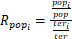 分别表示常住人口和国土面积;pop和ter分别表示城市群常住人口和国土面积总量。