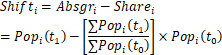该方法将人口增长分为“份额”增长和“偏移”增长两部分。若偏移增长量为正,说明该区域人口增长相对较快,人口呈现集聚态势。计算公式为: