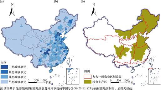图1 城镇单元分类和粮食主产区分布(自制)