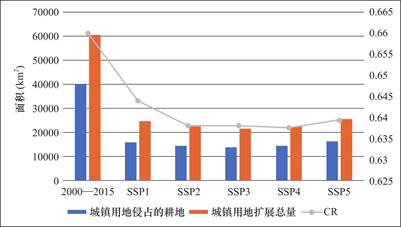共享社会经济路径下中国城镇用地扩展对耕地面积的影响