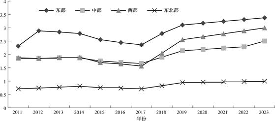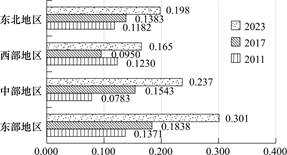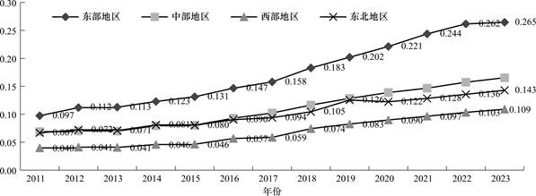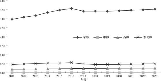 本文基于2011年至2023年间全国30个省(自治区、直辖市)的面板数据开展实证研究,所用数据主要取自《中国县域统计年鉴》《中国县域农村统计年鉴》《中国工业统计年鉴》《中国科技统计年鉴》及《中国贸易外经统计年鉴》。需要说明的是,在具体指标中存在部分年份的数据缺失,采取了插值法进行补齐。