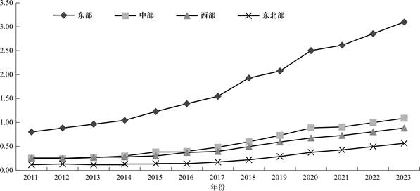 Fig.4 The level of new quality productivity in the four regions(self-made)