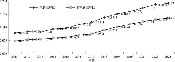Fig.6 New quality productivity level of main grain producing areas and non main grain producing areas(self-made)