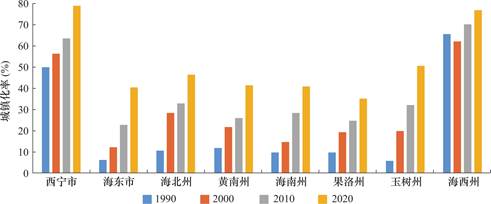 青藏高原生态安全屏障是我国生态安全格局的重要组成部分和国家对青藏高原的重要功能定位。可持续发展是青藏高原实现现代化的必由之路[1],城镇化是推动可持续发展的关键动力[2]。作为青藏高原重要组成部分的青海省,正处于快速城镇化的过程中,从2000年到2020年青海省城镇化水平提高了15.3个百分点,提高幅度几乎与全国同步。城镇化水平的快速提高带来人口空间分布、土地利用格局、交通环保等基础设施、教育医疗等社会设施建设布局急剧变化。青藏高原,包括青海省的可持续发展问题长期以来得到了学术研究的持续关注,走可持续道路获得了广泛的认同。虽然很早有研究就认为城镇化青海实现可持续发展的必有之路[3],但与其他方面的研究相比,城镇化研究并没有获得全面广泛的关注[4]。