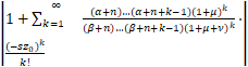 其中 (x)n=x(x+1)…(x+n-1)表示阶乘幂,1F1(α;β;z)是合流超几何函数,且常数α=