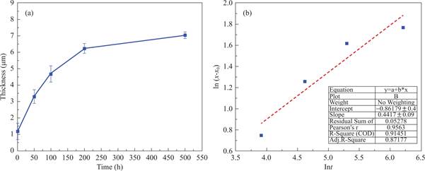 图4 (a)IMC厚度随老化时间的变化;(b)生长动力学拟合图